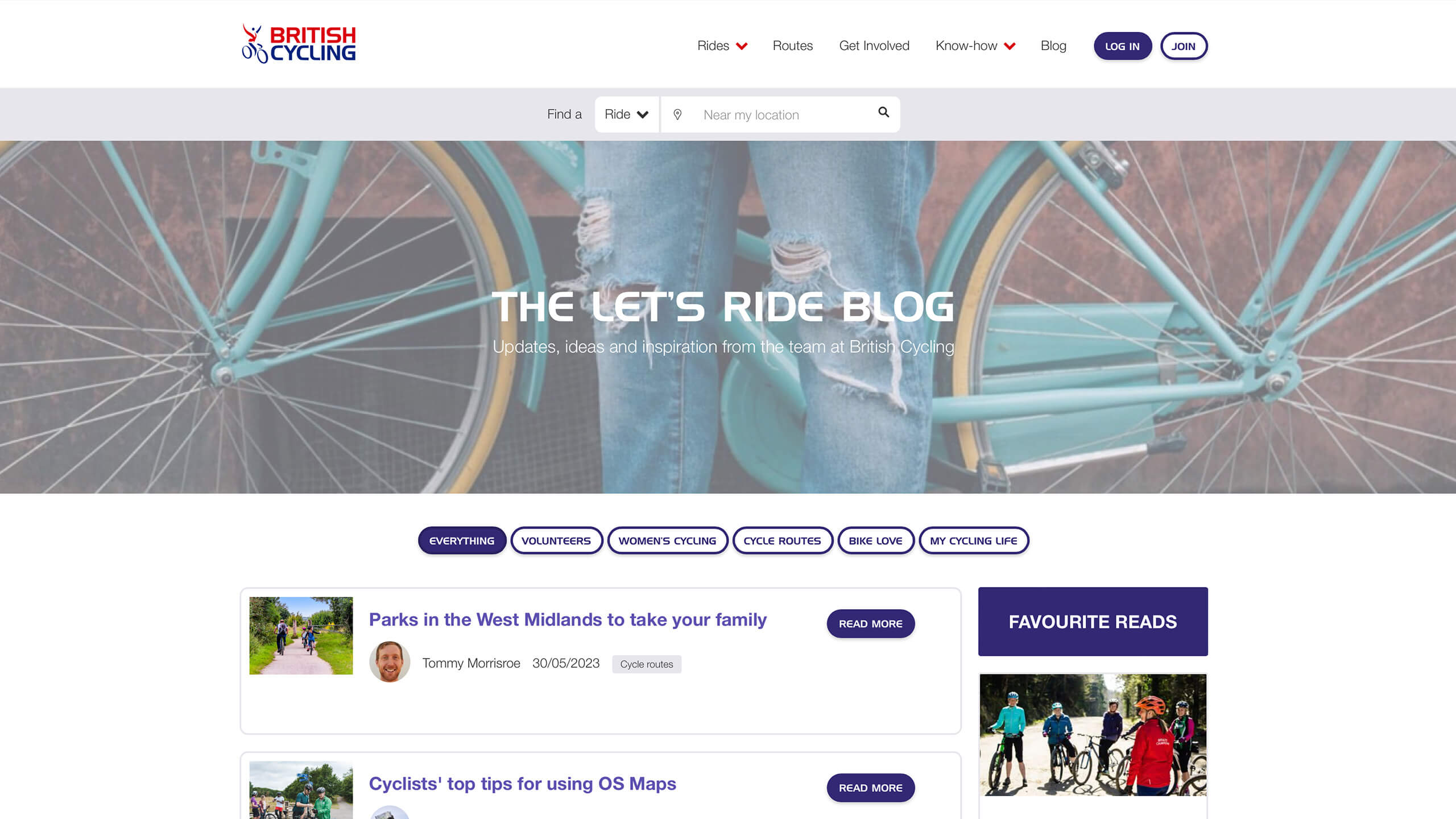 Creative direction work for British Cycling: Let's Ride site, including art direction, copy and user testing.